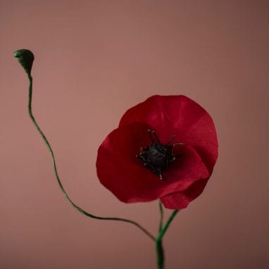 All the flowers were created using handmade dyes and fixatives, like avocado and pomegranate skins. Yolanda and the children experimented with mordants – which help to fix the colours – over three weeks. Each dyed piece of fabric was then made into a flower on the end of a wire stem.