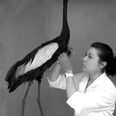 Double Preparations are inside-on-one-side, outside-on-the-other specimens, with skeletons covered on one side by their taxidermied skin.